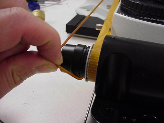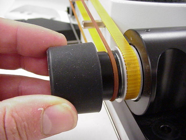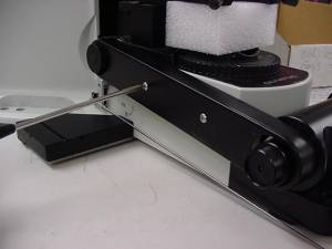 Remove the drive belt cover & left fine focus knob from the microscope as follows: