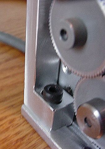 8.) Recheck the alignment by noting the drag while rotating the right fine focus knob. No noticeable drag should be felt. If any drag is felt other than the slight drag of the gears loosen the vertical and horizontal adjustment screws with the 3 mm Allen wrench and move the drive in the X, Y, and Z axes to a point where no drag is felt. Then tighten the vertical and horizontal adjustment screws. Note: There should be no point through out the 360º rotation of the fine focus knob where an increase in drag is felt. If drag is felt, repeat the above steps.