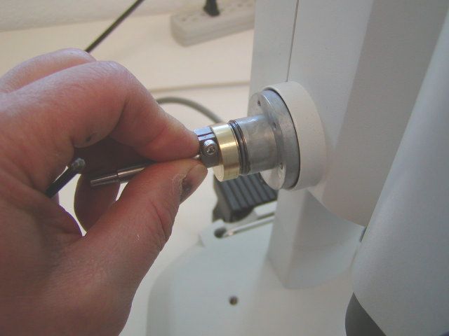 Figure 3 shows the location of the 3x 8 mm screw that must be removed / loosened to remove the ffk. Use the 2.5 mm Allen wrench to remove the screw while holding, or turning, the right fine focus knob.