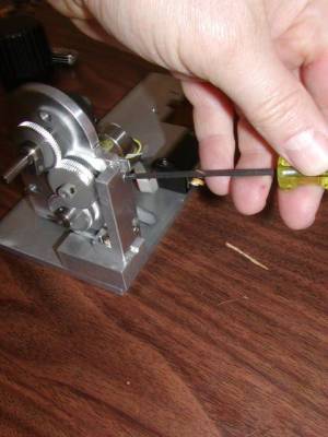 Locate the motor drive and base plate assembly as shown in figure 10. Use the 7/64 “mm Allen wrench to loosen the horizontal & vertical adjustment screws to screws as shown in figures 11 &12. Loosen the drive shaft clamp as shown in figure 13.