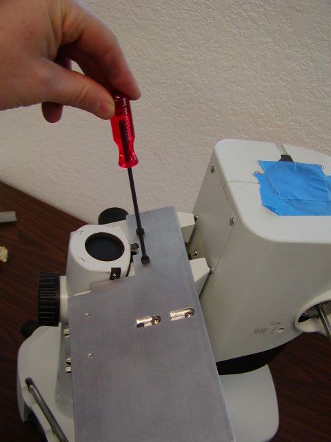Figure 14. The two 4 x 10 mm screws that secure the base plate to the microscope.