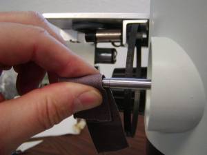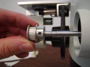 Figure 26. If you need to remove the zoom shaft belt gear you will need to sand off the slight “ dings” that the zoom knob setscrews may put in the zoom shaft.