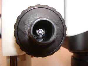 Figure 5. Check and make certain that the two spring washers remained inside of the coarse focus knob as shown & are not stuck to the inside of the ffk. If they are stuck to the ffk remove them and place them inside of the coarse focus knob as shown.