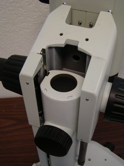 Part 1- Remove the Objectives, Trinocular head & Fluorescence illuminator to reduce weight when installing the drive assembly