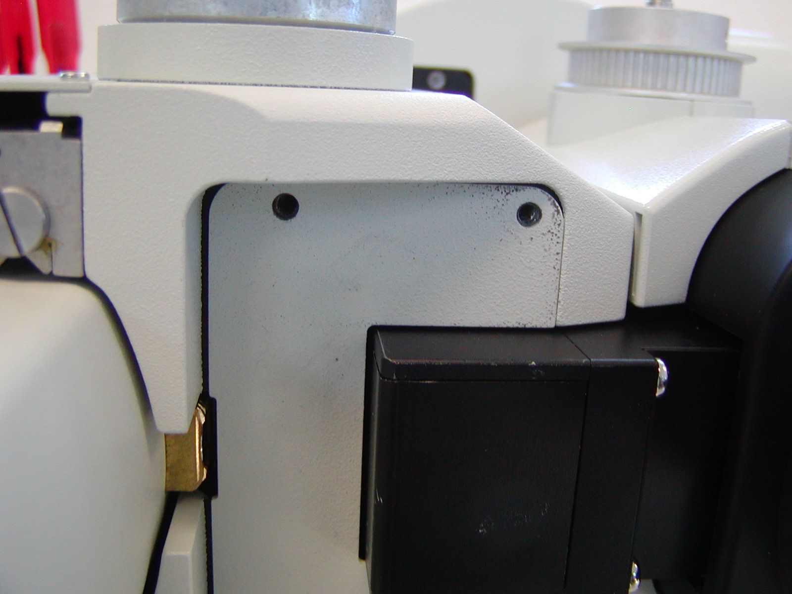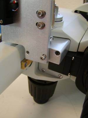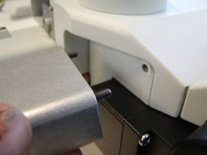 Figure 14. The two 3 x 45 screws that secure the base plate to the microscope.