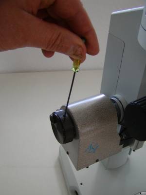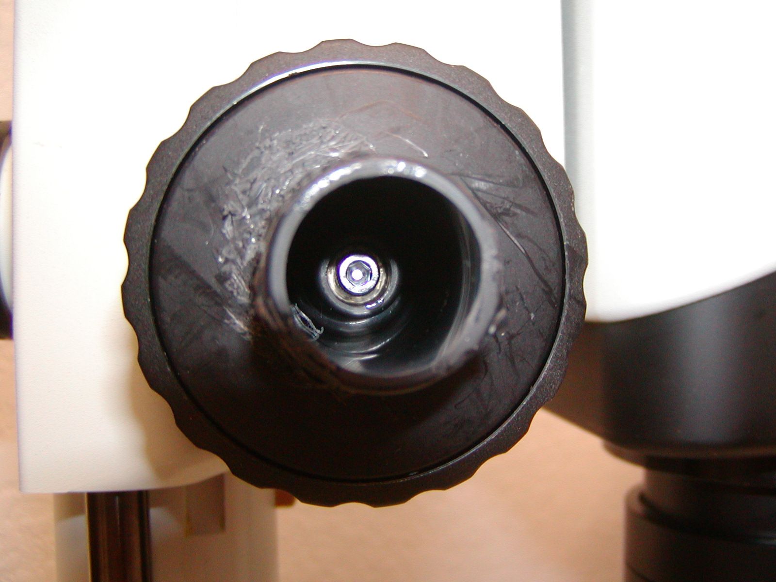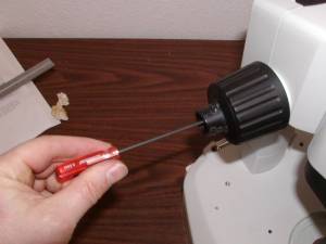 Remove the left fine focus knob from the microscope as follows:
