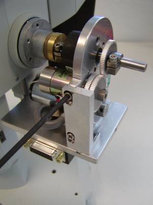As shown in the above photos locate the ASI drive cover and install it over the drive as shown. Use the supplied 4/40 button head screws and the 1/16 inch Allen wrench to secure the cover to the drive. After securing the cover install the original Olympus focus knob that was remover in figures 1 & 2 as shown above.