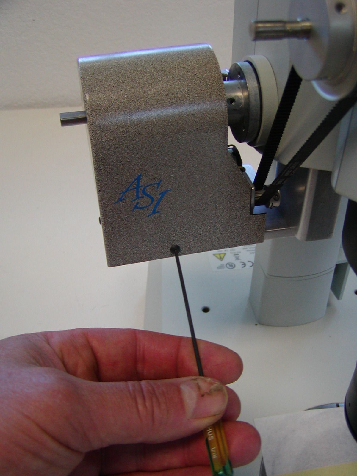 The procedure below outlines the steps necessary to install the ASI Microscope Focus Controller Drive onto the Olympus SZX2-FOF and SZX16 microscope.