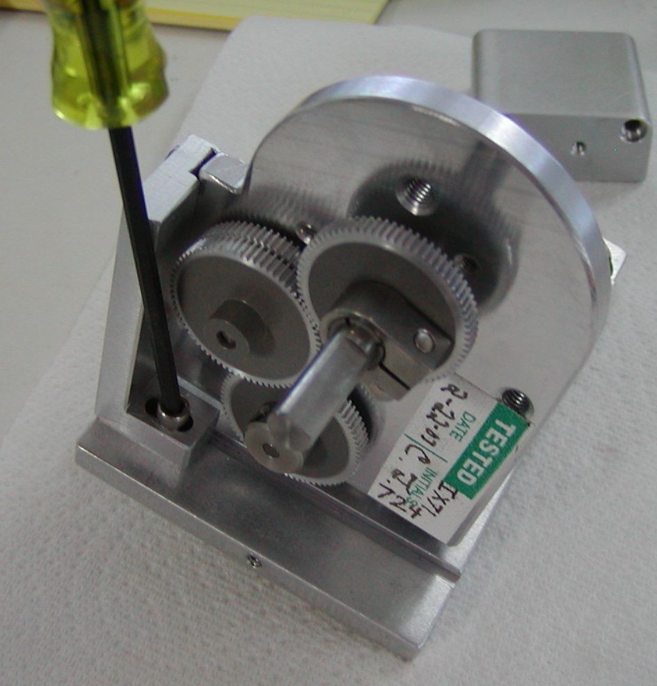 Check the alignment by noting the drag while turning the right fine focus knob. No noticeable drag should be felt at any point with in the full 360 degrees of rotation. If any noticeable drag is felt loosen the Vertical & Horizontal adjustment screws and reposition the drive to a point where no drag is felt. Then hold the drive in place and loosely tighten Vertical & Horizontal adjustment screws.
