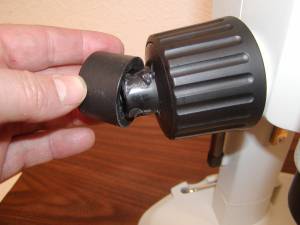 Figure 1 remove the rubber boot off of the end of the left fine focus knob