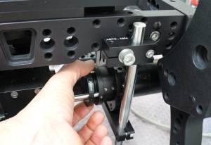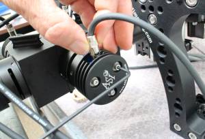 Newer CUBEs use thumb screw adjusters, older CUBEs use a 3/32 Allen driver. Adjust the mirror to bring the beam to the center of the objective hole as shown 1n the picture above.