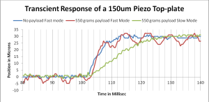 Figure 1: Shows Transient response of a 150um Piezo Top-plate with varying payload and modes
