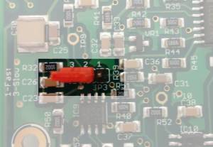 Figure 3: Jumper Pins 1& 2 to put piezo on Fast