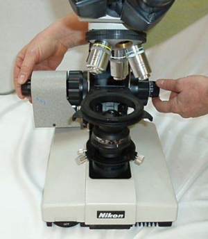 5. A focus shaft that clamps on to the fine focus shaft of the microscope.