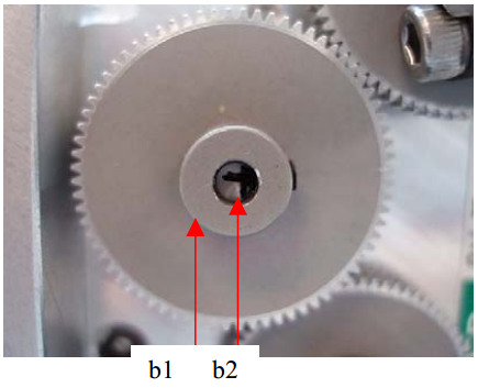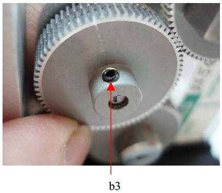Check to make certain that the clutch shaft (b2) turns with gear (b1), if slippage is occurring use a 0.05 inch Allen wrench to tighten set screw (b3)