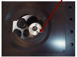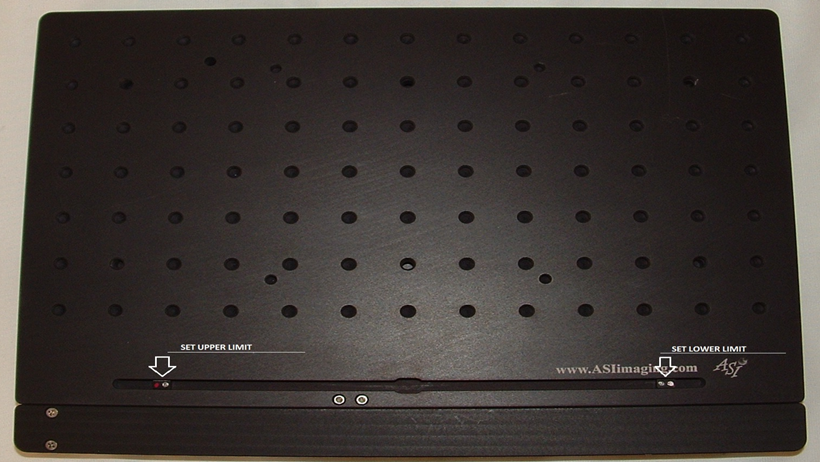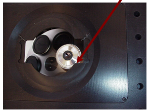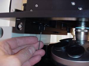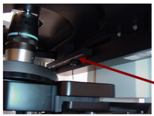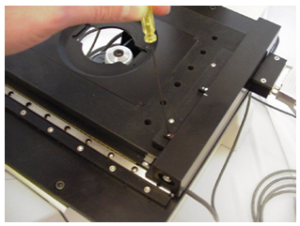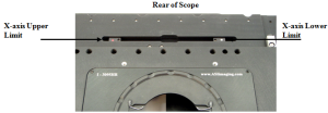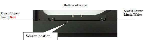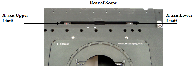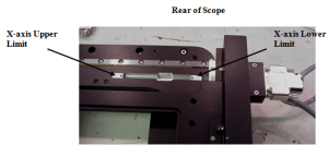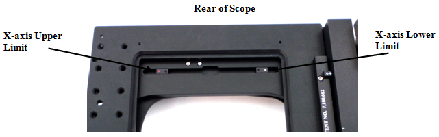 The X-axis limits are located on the middle stage plate, towards the rear of the microscope, as shown below in figure 7.