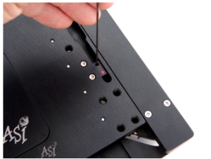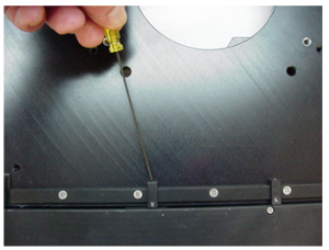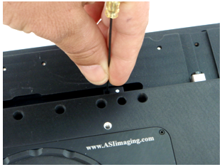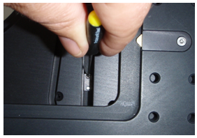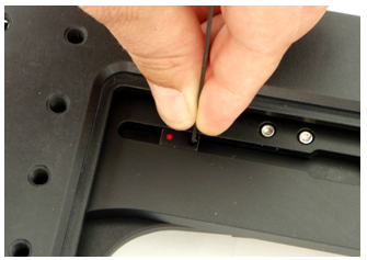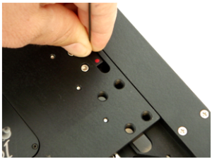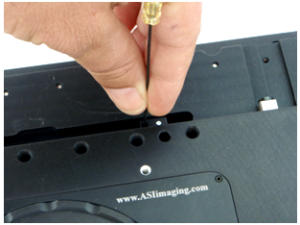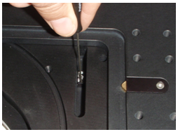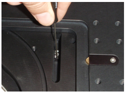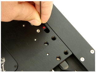 There are two sets of limit switches on nearly all XY stages. The two on the top of the stage as shown figures 1a & 1b below are used to limit the range of motion in the Y-axis. The two shown figure 2 a & 2b below are used to limit the range of motion in the X-axis, and these are located on the bottom of the stage. The X-axis limit adjustment setscrews can be accessed by moving the Y-axis towards the front of the microscope. You will need an Allen wrench that was supplied with the stage to make these adjustments.