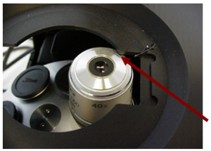 Please refer to the above figures 1a ~ 2b, and the figures below to set the limit switches to prevent the SI-INV-STD slide insert from hitting the objective.