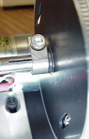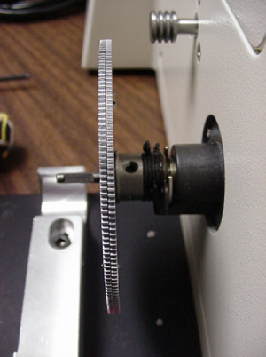 7) Next, rotate the drive assembly slightly until the edge grooves at the bottom towards the microscope are aligned with the mating surfaces on rectangular block. Press the drive assembly onto the rectangular block.