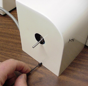 a.) remove both the UV and tungsten lamp housings by loosening the single screw securing the housing with a 3mm hex wrench.