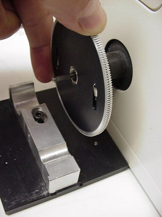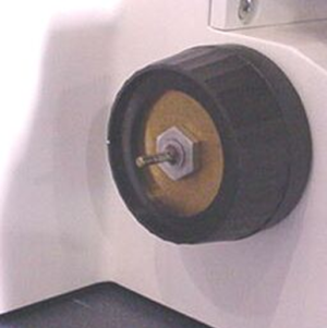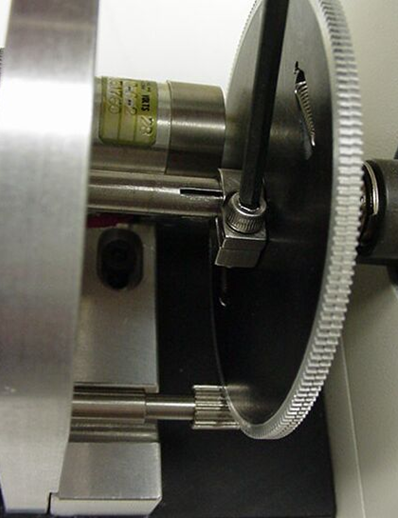 Remove the left fine focus knob from the microscope by loosening the setscrew, located in the side of the knob, using the 1.5mm hex wrench and then sliding the knob off the shaft.