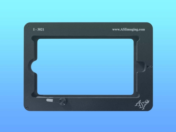 The I-3021 insert provides a 127.5 mm by 76.7 mm (5.02″ x 3.02″) opening to hold a PARC 3×5 slide. The unit is recessed to place the bottom of the slide about 7.2 mm below the top of the insert. Angled slider for secure stability.